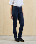 Women’s classic straight-leg jeans with a fade-resistant finish tested to 20 washes. Durable fabric fit for everyday comfort with elastane for stretch. Designed with belt loops, a metal button and a covered zip fly. Functional side-stitched pockets, rivets and stitched coin pocket with reinforced bar tacking. Stitched v-shape yoke and two patch pockets to the back. Classic jean styling with twin-needle stitching and metal hardware. Responsible fabric sourcing. Always Indigo contains certified recycled polyester. Available in regular leg (31'/79cm) and long leg (34'/86cm).